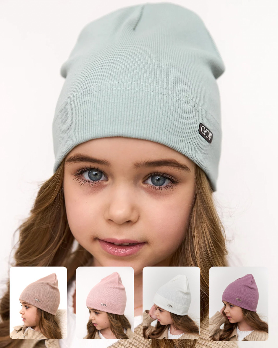 Шапка одношарова для дівчаток, артикул 3706, ідеально підходить на весняно-осінній сезон. Розмір 40-46. Склад: 95% бавовна і 5% еластан. Представлена в 5 кольорах. Виготовлена на власному виробництві Vertex.